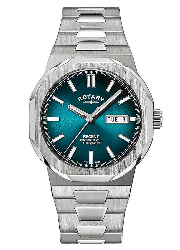 Rotary Men's Regent Automatic 100M Water Resistance Teal Dial Stainless Steel Bracelet Watch - Size ONE SIZE
