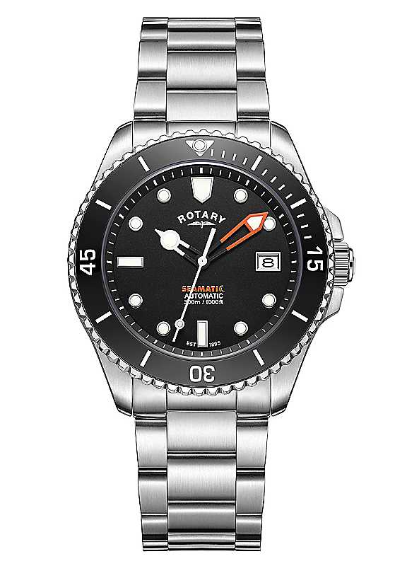 Rotary Seamatic 300m Water Resistance Black Dial Stainless Steel Bracelet Watch - Size ONE SIZE