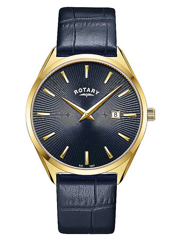 Rotary Ultra Slim Gold Plated Stainless Steel Blue Leather Strap Watch - Size ONE SIZE
