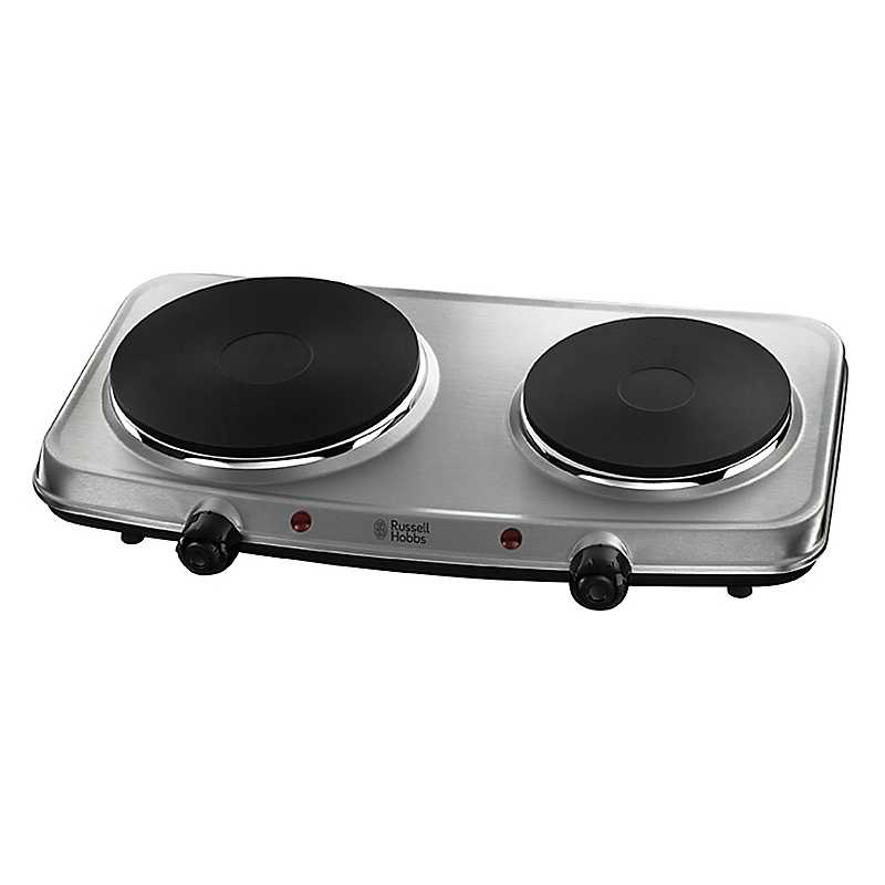 The Russell Hobbs 15199 Mini Hob is an ideal table top cooking solution if you are really pressed for space. It is also very portable meaning you can use it wherever you want (camping, holiday home etc). For added convenience and control, the two hot plates come in different sizes and are independently controlled. The Russell Hobbs mini hob is finished in stainless steel which does not just look, it is also really easy to clean. Brand: Russell Hobbs Dimensions approx. H7.8 x W25 x D46.8 cm | miniature hot plate, portable hot plate, solid plate hob, stainless steel hot plate