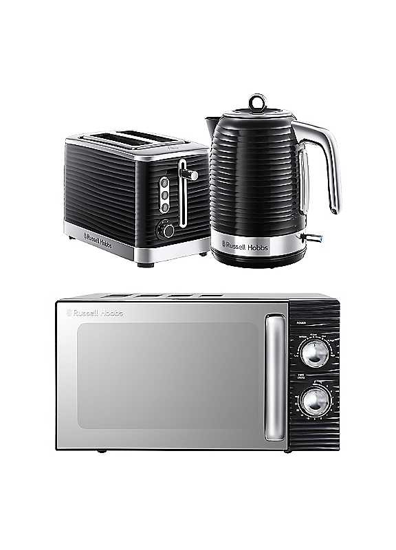 Russell Hobbs Black Inspire Bundle - Kettle, 2 Slice Toaster & Microwave