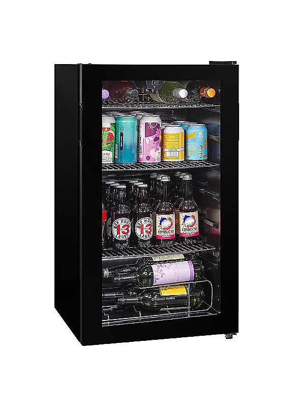 This impressive 93L freestanding wine, beer and drinks cooler is the perfect addition to your kitchen or entertainment area. With 3 removable shelves, and 1 wine shelf, it's easy to customise the cooler to your needs. Fully stocked, this cooler can hold up to 4 bottles of wine and 48 x 330ml cans, meaning its ideal for large families or those that love to entertain.With a stylish and contemporary design, this cooler will complement any setting and the quiet 40dB noise level won't intrude on your party atmosphere either. The sleek black door comes with a tempered glass window, so that you can easily see what's inside without opening the door and the handy LED light will help you to quickly find your chosen tipple.The adjustable thermostat has an impressive temperature range from 2°C - 15°C, so you can precisely adjust the temperature to suit the contents of your cooler. Plus, this cooler comes with adjustable feet so that you can place it wherever you like it, without any hassle.For added peace of mind, this Russell Hobbs appliance comes with a 1-Year Guarantee, plus an extra year upon registration. This way, in the unlikely event something goes wrong, you know we'll always be on hand to help.Model Number - RH48BC101BIntegrated - NoFreestanding - YesFridge Freezer Capacity - 93LEnergy Rating - EEnergy Consumption - 81kWhNoise Level - 40dBFrost Free - NoTemperature Control - YesNumber of Shelves (Fridge) - 3x Wire shelfAdjustable Shelves (Fridge) - NoNumber of Compartments (Fridge) - 1x Wine rackOpen Door Alert - NoInterior Light - YesRequires Plumbing - NoWarranty - 1 YearManual temperature controlInternal LED lightAdjustable feet1.8m power cordWeight - 27kgDimensions approx. 84.5H x 48W x 44D cm