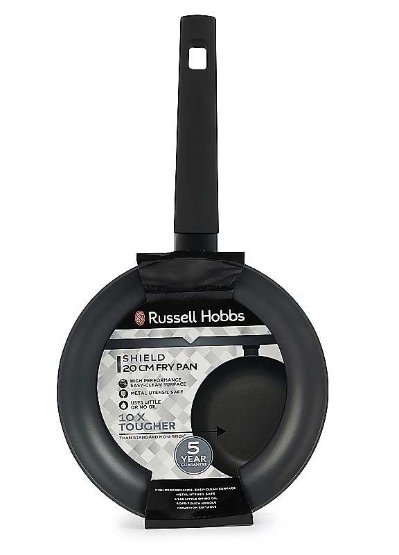 This Russell Hobbs Shield 20cm Frying Pan offers high-performance cooking, superior durability and unbeatable non-stick performance. The 10x tougher coating* is incredibly easy to clean by handwashing, can be used with little or no oil so you can enjoy healthier meals, and is metal utensil safe for frying without worry. The soft-touch handle stays cool during use and provides ergonomic comfort for easy manoeuvring. Great for every home, this pan is suitable for all hob types including induction.5 Year guarantee