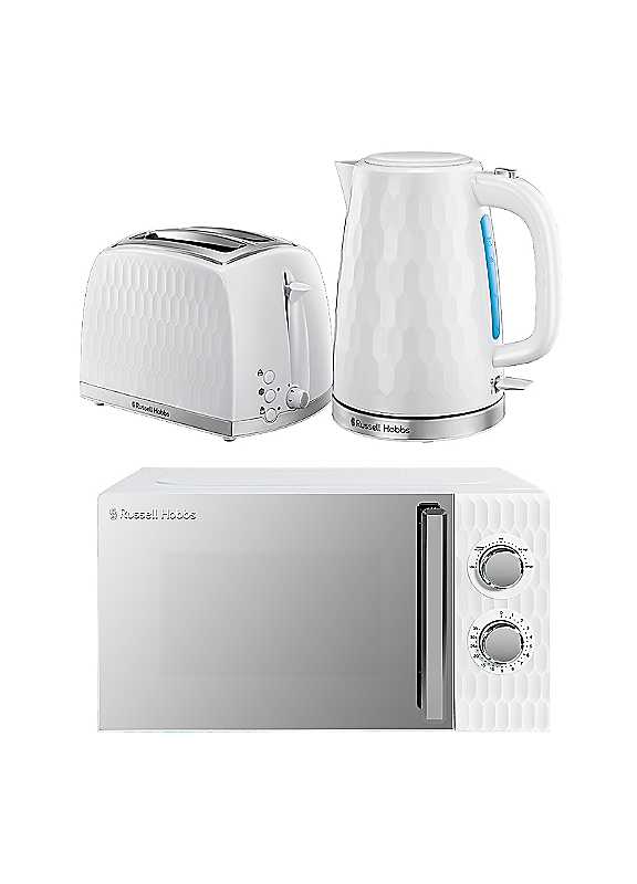 Russell Hobbs White Honeycomb Bundle - Kettle, 2 Slice Toaster & Microwave