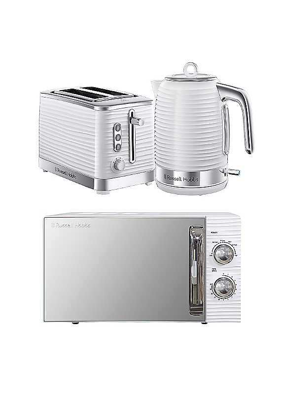 Russell Hobbs White Inspire Bundle - Kettle, 2 Slice Toaster & Microwave