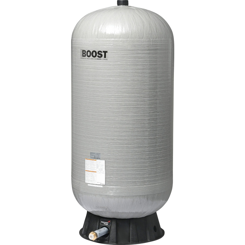 When the mains water flow and/or pressure is low, the water performance from showers, taps and other outlets in the home is disappointing, and multiple outlets can't be used at the same time. The AccuBoost range of accumulator vessels provide a solution by providing additional water flow to improve water performance and allow multiple outlets to be used simultaneously. Suitable for systems more than 2.0 Bar natural pressure, the AccuBoost 330L accumulator vessel will boost the water flow to an unvented system to deliver up to 24 litres per minute for 7 minutes. AccuBoost accumulator vessels store mains cold water around a bladder filled with pressurised air. The air is compressed as water is enters the vessel, so when an outlet, such as a shower or tap, is opened, water is forced out of the vessel by the air in the compressed bladder. * Supplies an additional 24 L/min to the incoming mains flow for up to 7 minutes * Suitable for unvented cylinders * Lightweight, composite material * Link multiple tanks together for additional capacity * A 'water-on-bag' design reduces strain on the bladder, preventing damage caused by excessive pressure * Supplied as one unit ready to install | Salamander Accuboost Unvented Accumulator Tank 330L in Grey