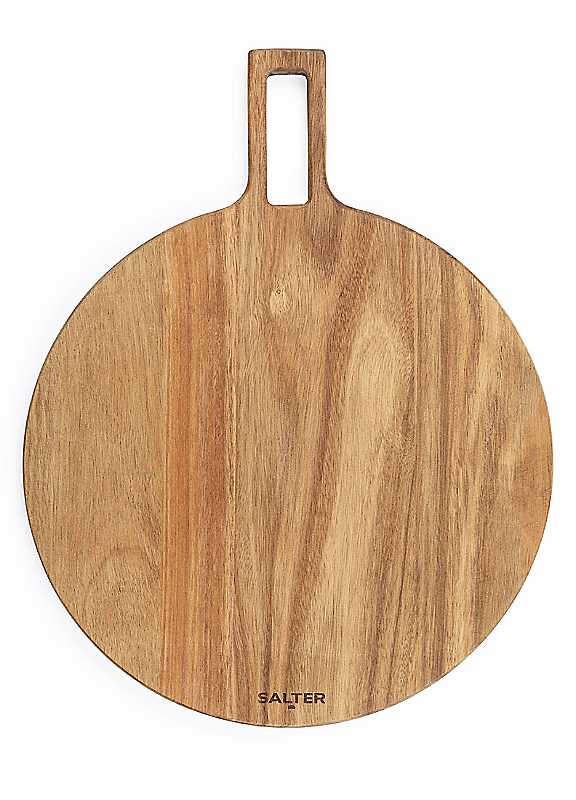 From crispy, authentic pizzas to homemade charcuterie, this Salter Toronto pizza board is perfect for all your food preparation needs. Crafted from stylish acacia wood, this round pizza paddle is perfect for preparing, cutting, serving, and transporting your pizza in and out of the oven. Designed with a convenient paddle handle, you can easily serve your delicious creations straight from the board to the table and simply clean by hand using warm, soapy water after use.