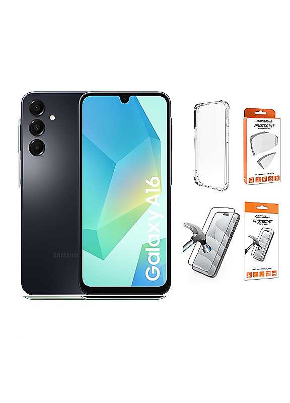 Samsung Galaxy A16 4GB RAM 128GB SSD Mobile Phone with Gel Case & Screen Protector - Black