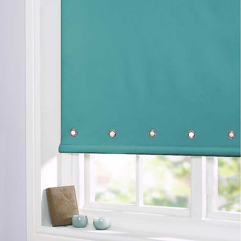 This stylish eyelet blackout roller blind is ideal for blocking out sunlight, and street lamps. The thermal properties also trap heat and help stop draughts in the house during the summer months. Easy to install, and can also easily be cut down to size. Comes supplied with child safe cleat mechanism. Width is inclusive of mechanism.Thermal blackoutSpot clean only100% Polyester