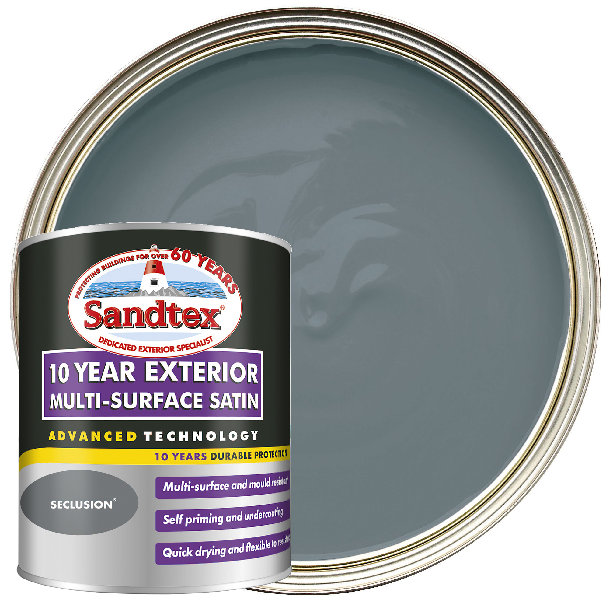 Sandtex 10 Year Multi Surface Exterior Satin - Seclusion - 750ml - Sandtex® 10 Year Exterior Multi-surface Satin is specially formulated to provide up to 10 years trusted durable protection for multiple surfaces in a low sheen finish. Its advanced technology is mould resistant and flexible to resist cracking and flaking, and with a self priing and undercoating formulation you can get the job done with ease.