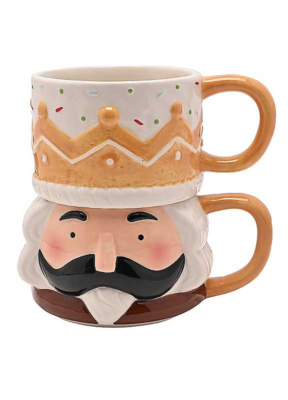 Santa & Friends Ceramic Gingerbread Nutcracker Stacking Mugs