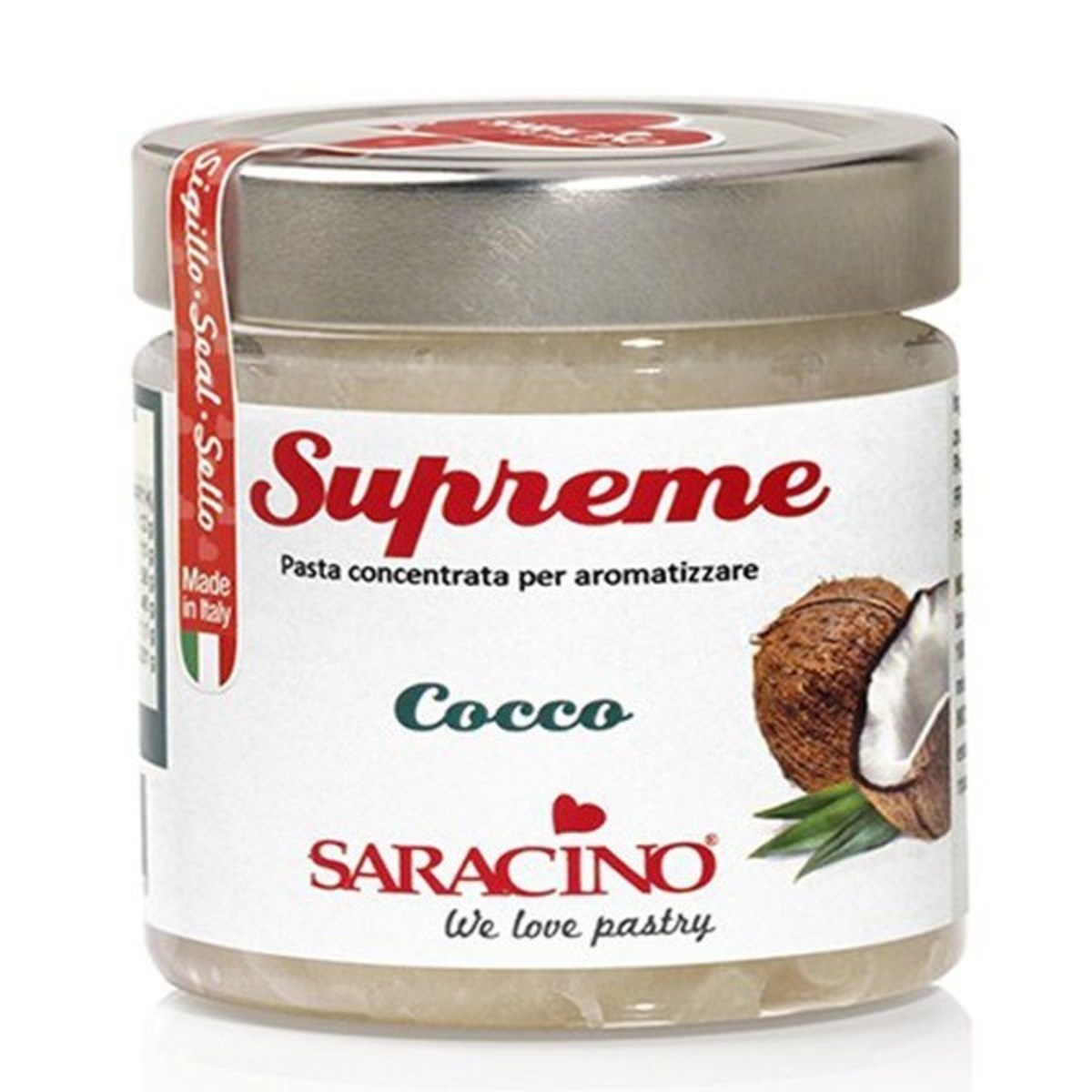 This concentrated food flavouring paste by Saracino is made with real coconut rape. It's ideal for use in baking, mixed into ice cream or even used as a jam