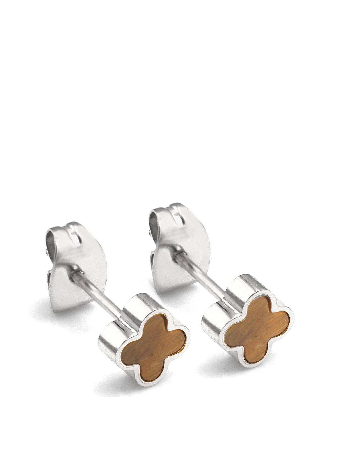 Say It With Diamonds Crystal Clover Earrings Tiger Eye Size & Fit Available In One Size Details Crystal Clover Earrings Tiger Eye By Say It With Diamonds Grounded Elegance Meets Everyday Strength In The Tiger Eye Crystal Clover Earrings In Silver. Crafted From Durable Stainless Steel, These Stud Earrings Are Waterproof, Anti-Fade, And Anti-Tarnish, Offering Long-Lasting Shine And Resilience. Each Earring Features A Refined Clover-Shaped Design, Set With A Tiger Eye Crystal - A Stone Known For Its Grounding Energy, Confidence-Boosting Properties, And Protective Symbolism. Stylish And Meaningful, These Earrings Are Perfect For Adding A Touch Of Earthy Sophistication To Your Look - Whether You'Re Dressing Up Or Keeping It Casual. Metal: Stainless Steel Colour: Silver Crystal: Tiger Eye
