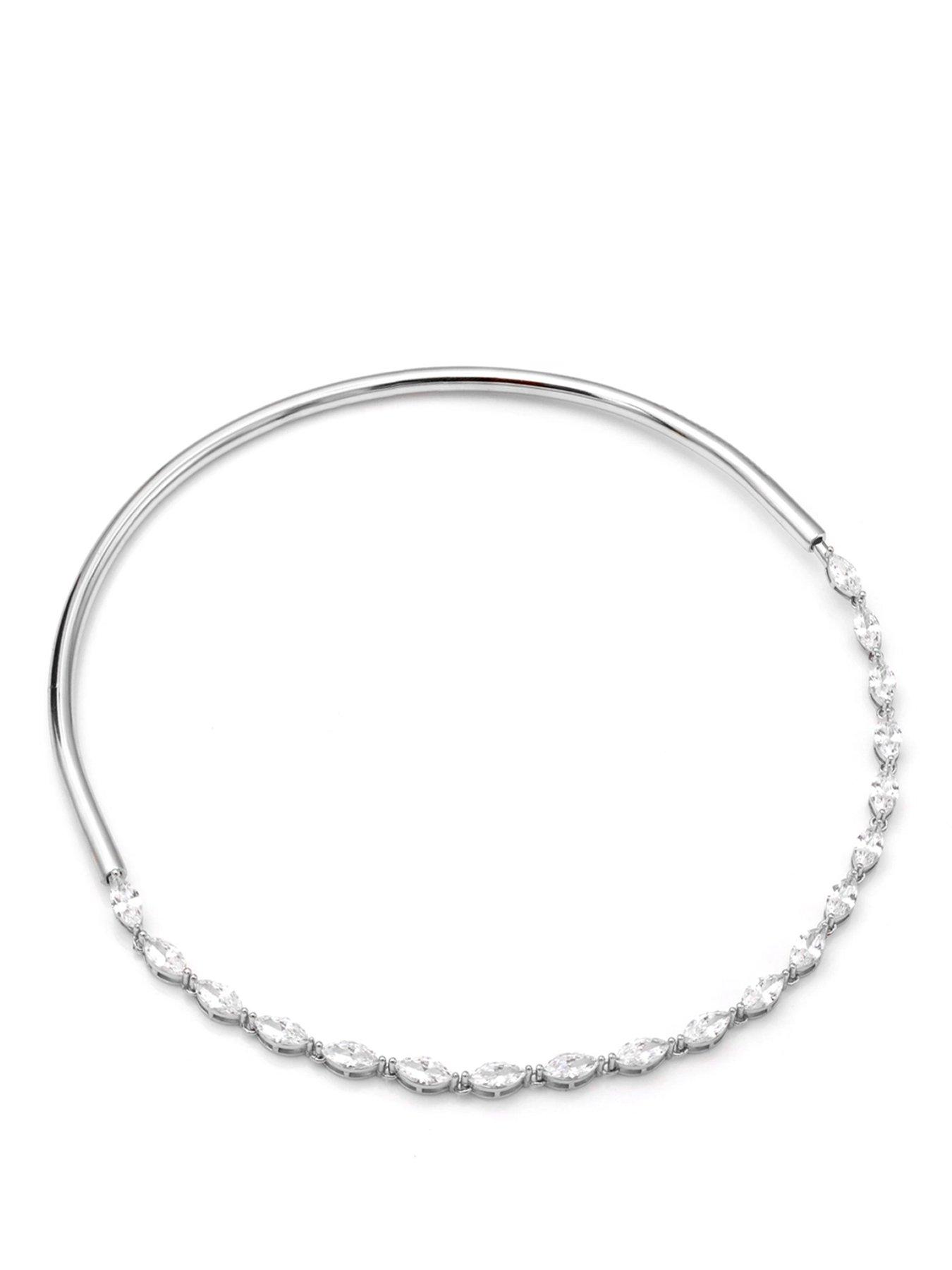 Say It With Detachable Oval Choker Necklace - Silver Make A Statement That'S Both Modern And Meaningful With The Detachable Oval Choker Necklace In Silver. Crafted From Sterling Silver, This Sleek Choker Features An Interchangeable Bar Design That Allows The Necklace To Be Easily Detached And Swapped For Other Styles. The Oval-Cut Cz Stone Necklace Brings Refined Sparkle To The Front, Adding Class And Elegance To Your Look. Designed For Versatility And Everyday Wear, This Piece Is Perfect On Its Own Or Customized To Match Your Mood. Product Information Metal: Sterling Silver Colour: Silver Gemstone: Cubic Zirconia Chain Size: 7.5-Inch Bar Size: 8-Inch Fashion Jewellery Type: Necklaces Metal Type: Silver Stone Type: Gem