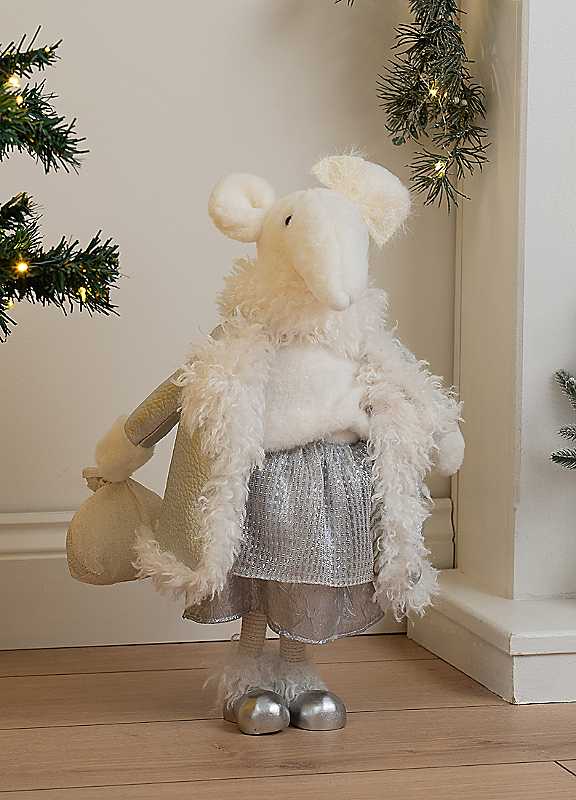 Add a touch of sparkle and charm to your home with this 44cm plush mouse in silver. This enchanting plush features a shimmering silver outfit, long nose, and an adorable little head bow, making it a delightful addition to any room. Perfect for bringing a whimsical and magical vibe to your d©cor, this adorable mouse adds a unique twist with its metallic sheen, making it stand out in any setting.Whether displayed as part of your holiday decorations, in a child's room, or as a fun accent piece, this plush mouse is sure to capture hearts with its irresistible cuteness and cosy charm. A perfect gift or a stylish accent, this plush mouse brings a playful touch to any space!Wipe clean with a dry, soft clothDimensions (approx, assembled). 44H x 30W x 24.5D cmPlease note: For decoration only. This is not a toy.