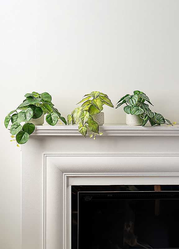 A set of 3 classic plants including Peperomia 'Watermelon' Argyreia, Pilea Peperomioides (Chinese Money Plant) and Pothos (Devil's Ivy). White speckled ceramic pots.Pot: CeramicPlant: Polyethylene (PE)Dimensions approx. 15H x 8W x 8D cmPot size approx. 7.5H x 8D cmPlant height approx. 16 cm