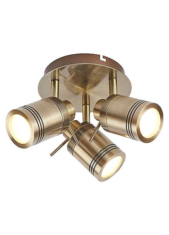 Bring instant elegance to your bathroom with the Matson 3 light spotlight, finished in timeless antique brass. Designed with three adjustable heads mounted on a central base, this fitting offers targeted lighting just where you need it. Subtle ridged detailing at the base adds a touch of texture and visual interest. With an IP44 rating, it's splash-proof and perfectly suited for bathroom environments.GU10 LED 10 WBulb not includedIP44 RatedDimensions approx. 16H x 28W x 28D cm