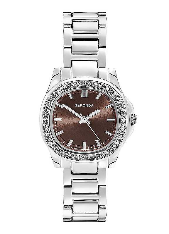 This ladies silver dial watch is brought to us by Sekonda, gorgeous brown clock face with crystal embellished rim.Analogue WatchSilver Ion Plated / Brown faceSilver Stainless Steel BraceletSilver HandsNo Water resistant | ladies bling watches, women's stainless steel watch, stainless steel watch bands, brown metal watch ladies, analog wrist watch for women, round dial watches for ladies, analog watch for women, ladies watch bracelet, metal watch bracelet, ladies analogue watch, round watches for ladies, watch bracelet silver, metal watches for ladies, ladies rhinestone watch, silver analog watch, ladies work watches, classic female watches, silver metal watch, brown watch for ladies, watch for working women