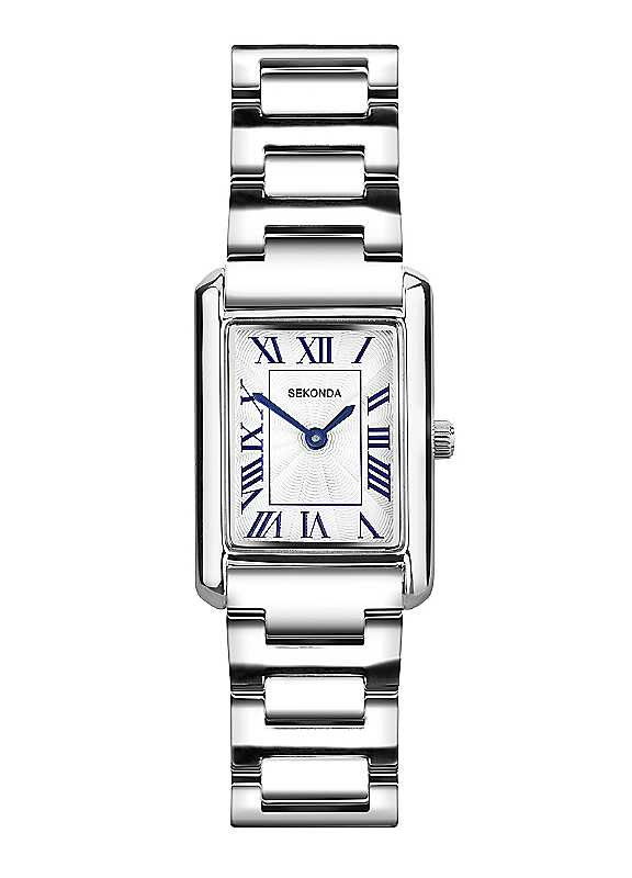 This watch has a two tone rectangular 22mm alloy case, housing a white guilloche dial featuring roman numerals and blue hands. The watch is fastened with a sleek, ion-plated two tone alloy bracelet with a jewellery clasp. GUILLOCHE DIAL - This watch features a beautiful guilloche dial, designed not only to elevate the quality of this beautiful watch but to improve readability as well. MOVEMENT - This watch houses a Japanese movement that offers optimized precision, power saving and freedom of design. GUARANTEE - Your Sekonda watch comes with a standard 2 year guarantee. Water resistance up to 30 metres Comes with a 2 year guarantee This watch uses 1 x SR626SW for it's replacement battery