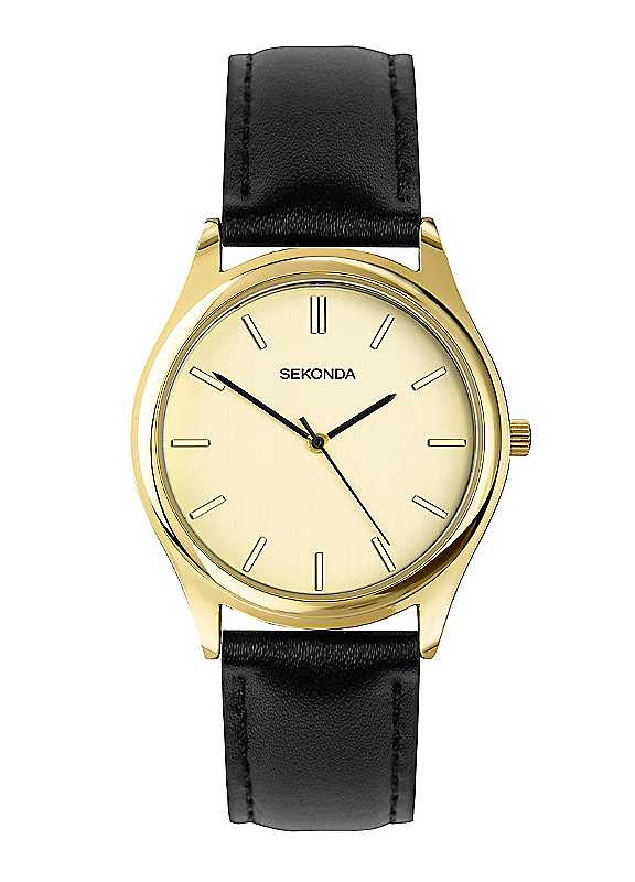 This watch has a round 38mm gold alloy case, housing a brushed champagne easy-reader dial with gold hour batons. The watch is fastened with a black leather strap with a pin and buckle closing.EASY READER - The Evans has an easy to read brushed champagne dial - perfect for everyday use.MOVEMENT - This watch houses a Japanese movement that offers optimized precision, power saving and freedom of design.GUARANTEE - Your Sekonda watch comes with a standard 2 year guarantee.Water resistant up to 30 metresComes with a 2 year guaranteeThis watch uses 1 x SR626SW for it's replacement battery
