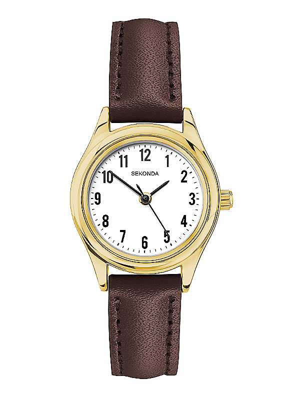 Sekonda Evans Ladies Brown Leather Strap & Gold Case Watch - White - Size ONE SIZE