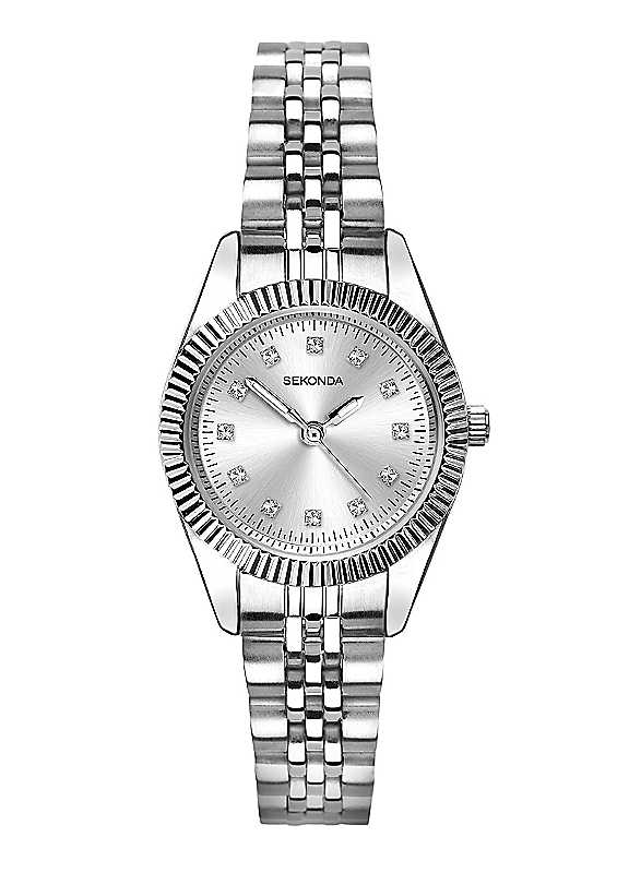 This watch has a silver round 26mm alloy case, housing a silver sunray dial with stone set hour markers. The watch is fastened with a silver stainless steel bracelet with a folding clasp.STONE SET - The Francis collection has a touch of added sparkle with stone set hour markers on the dial. Perfect for any woman who wants a bit of luxury in their everyday.MOVEMENT - This watch houses a Japanese movement that offers optimized precision, power saving and freedom of design.GUARANTEE - Your Sekonda watch comes with a standard 2 year guarantee.Water resistant up to 50 metresComes with a 2 year guaranteeThis watch uses 1 x SR626SW for it's replacement battery