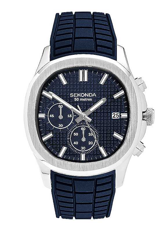 Sekonda Octaire Chronograph Men's Navy Silicone Strap & Silver Case Watch - Blue - Size ONE SIZE