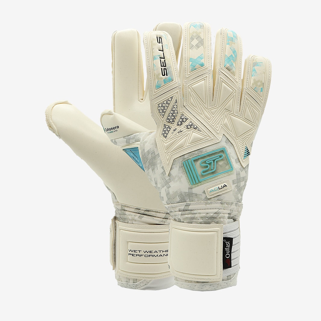 Perform at your best in wet conditions wearing Sells Kids F3 Aqua Pure goalkeeper gloves in WhiteAqua Blue, featuring Adhesion Ultra latex for nextlevel grip in the rain. Designed to give you complete confidence in your catching and handling, the Pure edition of the Sells F3 Aqua is equipped with their reliable wetweather latex formula to make sure the ball stays under your control, even during a downpour. The Adhesion Ultra palm is backed with memory foam for instant shock absorption, taking the sting out of shots and allowing greater control as you push goalbound efforts away to safety. The F3 style standing for Fit, Feel and Function utilises a negative cut that wraps around the fingertips. The benefit is not only a tight, snug fit with better feel on the ball, but also a better latextoball contact that accounts for glove movement. On the backhand, new Ordway Outlast material provides thermoregulation and moisture reduction to keep your hands dry and fresh, while remaining strong, soft, and comfortable. CUT Negative with wrapped elements PALM 3.5mm Adhesion Ultra Magnet latex with 5mm Memory Foam BACKHAND Outlast Ordway 3mm latex WRIST CLOSURE Acclimatize fabric with elastane insert and ACZ Adhesion Control Zone strip latex strap with stretch insert