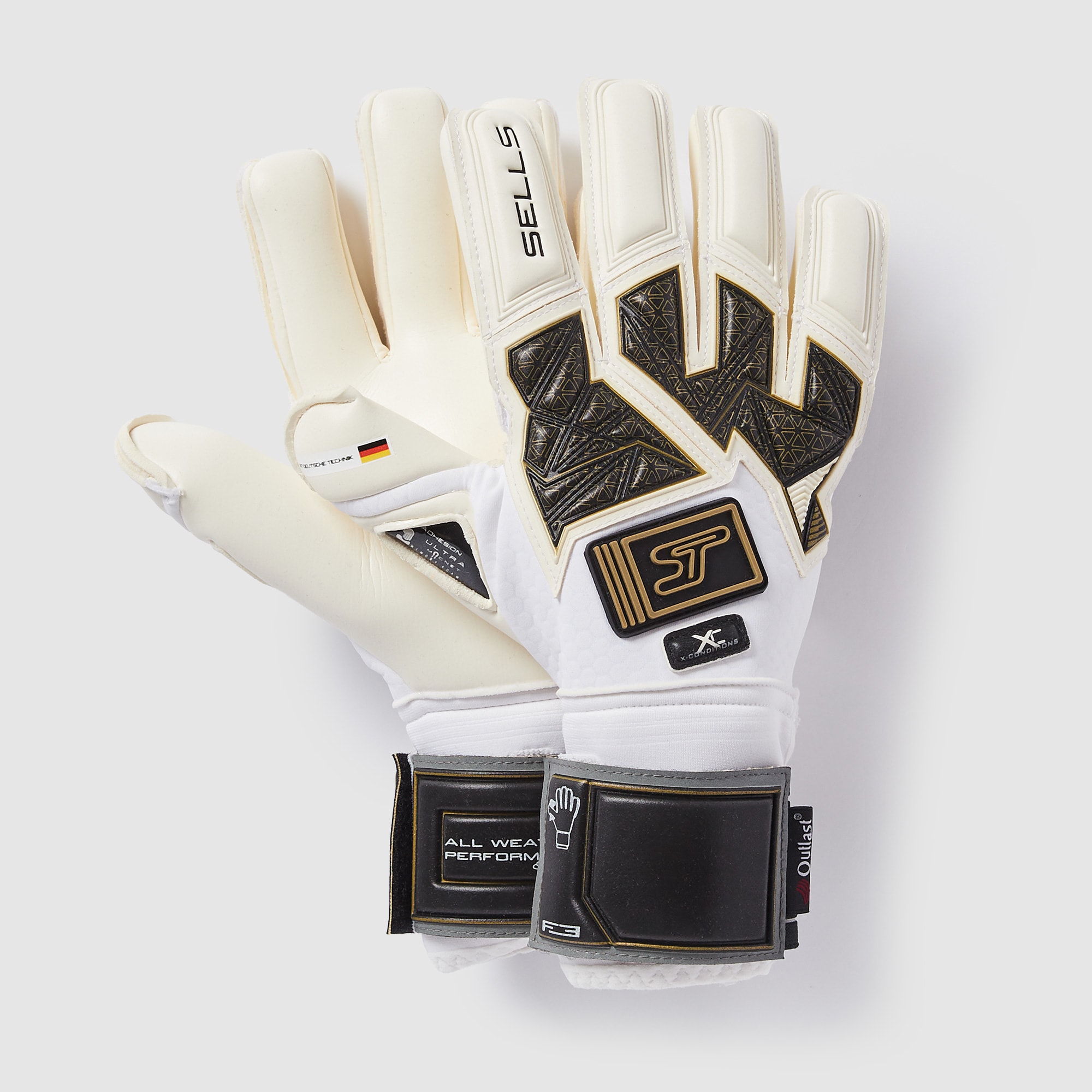 Perform at your best whatever the weather wearing Sells Kids F3 XC Champion goalkeeper gloves in WhiteBlackGold, featuring Adhesion Ultra Magnet latex for nextlevel grip in all conditions. Designed to give you complete confidence in your catching and handling, the XC Cross Conditions Sells F3 Champion boasts an updated latex formulation that excels in both wet and dry conditions, and anything in between.The Adhesion Ultra Magnet palm provides instant shock absorption, taking the sting out of shots and allowing greater control as you push goalbound efforts away to safety.The F3 style standing for Fit, Feel and Function utilises a negative cut that wraps around the fingertips. The benefit is not only a tight, snug fit with better feel on the ball, but also a better latextoball contact that accounts for glove movement.On the backhand, Ordway Outlast material provides thermoregulation and moisture reduction to keep your hands dry and fresh, while remaining strong, soft, and comfortable. Specially developed Cross Conditions model for grip in all weather conditions Cut Rollfinger cut Palm 3.5mm Adhesion Ultra Magnet latex Backhand Outlast Ordway 3mm latex Wrist closure Acclimatize fabric with elastane insert and ACZ Adhesion Control Zone strip latex strap with stretch insert
