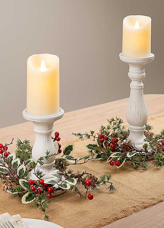 Set of 2 25cm Variegated Leaf & Berry Candle Ring