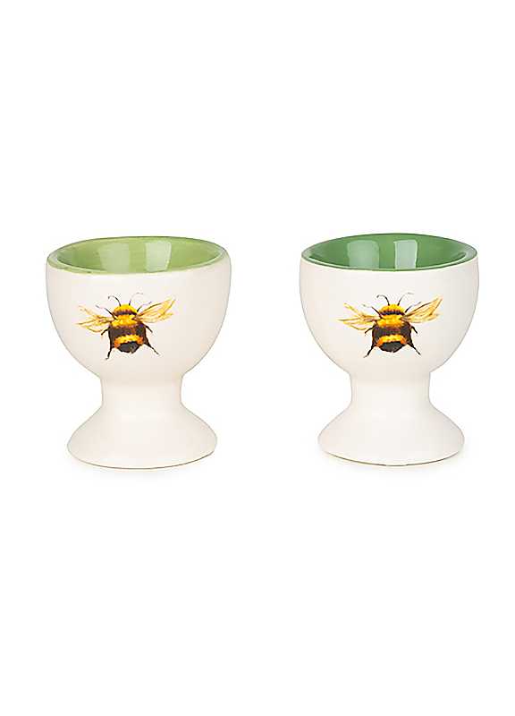 Great for holding delicious, hard-boiled eggs, the Sweet Bee Set of 2 Egg Cups are decorated with a cute bumble bees.Set of 2Wash before first useHand wash onlyNot suitable for dishwasher or microwave useCeramic