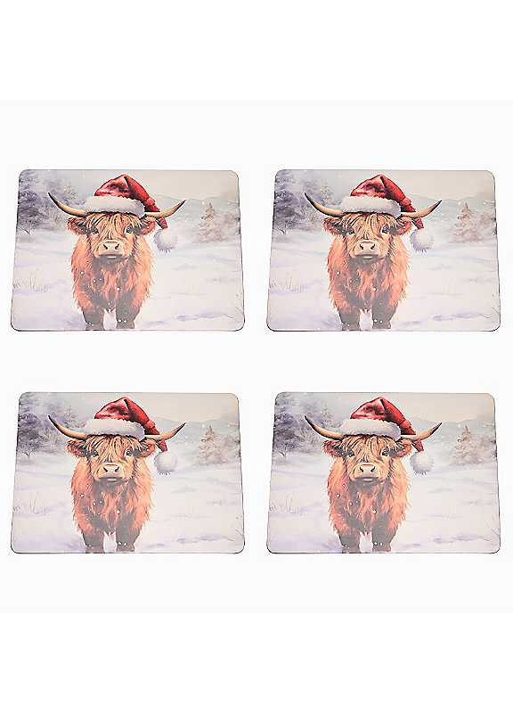 Set of 4 Christmas Highland Cow Placemats