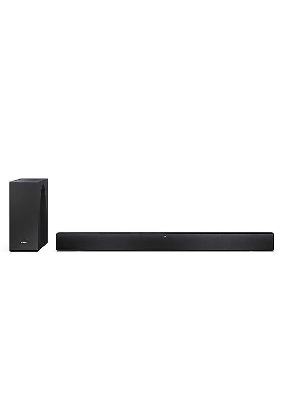 Enjoy rich, immersive sound at home with the Sharp HT-SBW310, a compact 2. 1 channel soundbar featuring Dolby Atmos® and DTS Virtual:X®. With up to 330W of power, it delivers clear audio and a spacious surround sound effect, perfect for watching films, TV or listening to music. The slim wireless subwoofer adds deep bass without the need for extra cables, making it easy to set up in any room. The soundbar connects to your TV with HDMI eARC, ensuring audio stays in sync and letting you control everything with your TV remote. You can also stream music wirelessly using Bluetooth 5. 3, or play files directly from a USB drive, with support for MP3, WAV, FLAC and AAC formats. Inputs include digital optical, 3. 5mm Aux, and USB, giving you flexibility to connect different devices. Sound settings can be adjusted using six EQ presets, or you can tweak the bass and treble manually to suit your preferences. Designed to be easy to install and use, the HT-SBW310 can be wall mounted or placed on a surface, and is Roku TV Ready, which means quicker setup and easy sound control with compatible Roku TVs. Whether you're upgrading your living room setup or just want better sound, this soundbar offers a powerful and stylish audio solution. Dolby Atmos® and DTS Digital Surround® engines decode the latest audio formats for immersive surround soundDolby Speaker Virtualizer and DTS Virtual:X® create immersive virtual 3D surround sound330W Max power outputWireless subwoofer delivers a cinema-style experience, without the hassle of wiresEqualiser with 6 pre-sets (inc. night mode) + custom bass & treble adjustmentHDMI (eARC/CEC) connection ensures no sync issues and allows control of the Soundbar with the TV remoteBluetooth 5.3 wireless music streamingDigital optical and 3.5mm Aux inputsUSB playback compatible with: MP3/WAV/FLAC (drives up to 64GB supported)Wall mount or table top positioningCertified to work seamlessly with Roku TVTM. Enjoy a simple setup and quick access to sound settings.Dimensions: Sound bar - W802 x H66 x D79mm / Speaker - H25.8 x W105 x D370mm