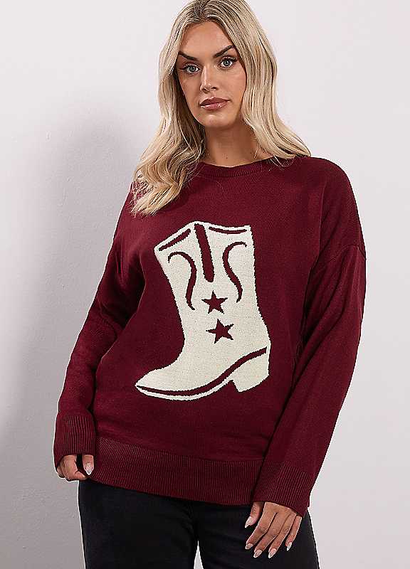 Yours Curve Western Boot Jumper - Red - Size 22/24