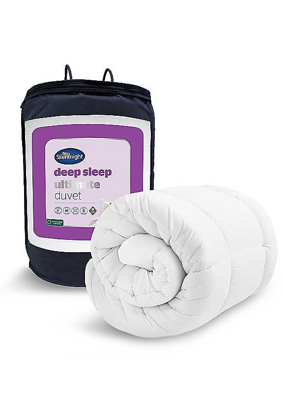 Sink into deeper sleep. Generously filled with a luxurious quilted cover for ultimate cushioned comfort, helping you sleep deeper every night. The box-stitched, bordered design keeps the filling perfectly in place for even warmth from edge to edge, while remaining breathable to help regulate your body temperature throughout the night. The Silentnight Deep Sleep Ultimate Duvet is deeply filled with luxuriously premium down-like FIBADOWNTM fibres, providing dreamy comfort.The Silentnight Ultimate Deep Sleep Duvet comes with a 5-year manufacturer's guarantee for peace of mind. The duvet is hypoallergenic which means it's kind to skin and does not include any contents likely to cause allergies, it's also machine washable, so you can keep enjoying an ultimate deep sleep.Silentnight are the UK's most trusted bed brand with over 75 years' experience in creating products that offer solutions for every sleeper. 100% Hollowfibre filling Machine WashableQUALITY GUARANTEE: Proudly made in the UK with a 5-year manufacturer's guarantee.HYPOALLERGENIC: Kind to skin and does not include any contents likely to cause allergies.SUPER SOFT COVER: Encased in a luxuriously soft touch cover with a luxury quilted design, providing extra cosy luxury as well as superior durability for longer lasting comfort. DEEP SLEEP: Sink into deeper sleep. Generously filled with a luxurious quilted cover for ultimate cushioned comfort, helping you sleep deeper every night. 10.5 tog rating for all year round comfort.ULTIMATE CUSHIONED COMFORT: The box-stitched, bordered design keeps the filling perfectly in place for even warmth from edge to edge, while remaining breathable to help regulate your body temperature throughout the night. LUXURY FIBADOWNTM FIBRES: Crafted with luxurious down-like FibadownTM fibres for dreamy comfort. 100% Microfibre