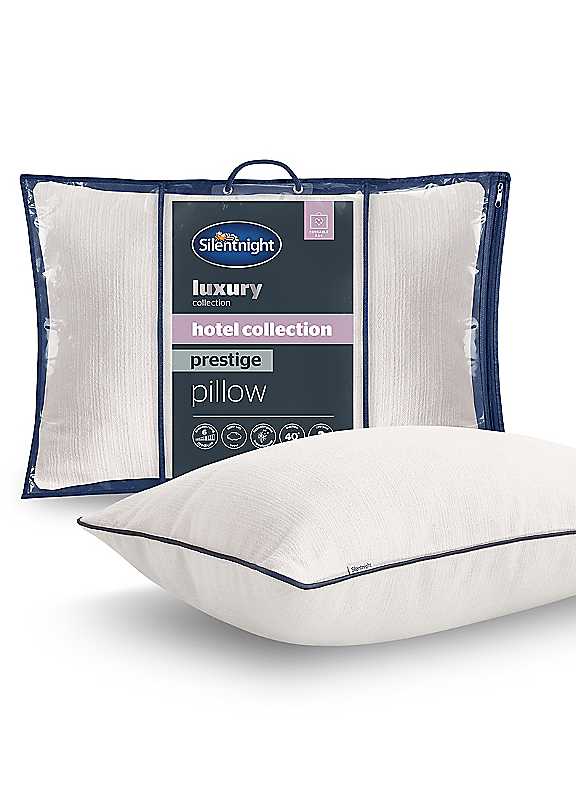 Indulge in the next level luxury of a 5-star retreat every night. Deeply filled with soft down-like ball fibres with an elegant, brushed twill cover to bring the luxury of a high-end hotel right to your home. This is the perfect alternative to feather and down, especially for those with allergies, providing a wonderfully luxurious feel that is completely hypoallergenic.The Hotel Collection Prestige Pillow provides medium support, which is perfect for everyone, meaning that no matter your sleep position preference you can enjoy wonderful comfort and support all night long. This product is made with expert craftsmanship right here in the UK and comes with a 2-year manufacturer's guarantee. It's even machine washable so you can keep enjoying hotel quality night after night.Silentnight are the UK's most trusted bed brand with over 75 years' experience in creating products that offer solutions for every sleeper.100% Hollowfibre filling MACHINE WASHABLE: Fully machine washable so you can keep enjoying hotel quality night after night.QUALITY GUARANTEE: 2-year manufacturer's guarantee.HYPOALLERGENIC: The perfect synthetic alternative to feather and down, for a luxurious feel that is completely hypoallergenic. LOFTY DOWN FEEL: Deeply filled with soft down-like ball fibres to offer sumptuously soft comfort paired with bounce back and loft.5 STAR COMFORT: Indulge in the next level luxury of a 5-star retreat every night. Deeply filled with soft down-like ball fibres with an elegant, brushed twill cover to bring the luxury of a high-end hotel right to your home.STYLISH COVER: Elegant, brushed twill cover, that is beautifully soft and durable. Stylish piping detail finishes off the luxurious hotel-at-home look.100% Brushed TwillOne Size