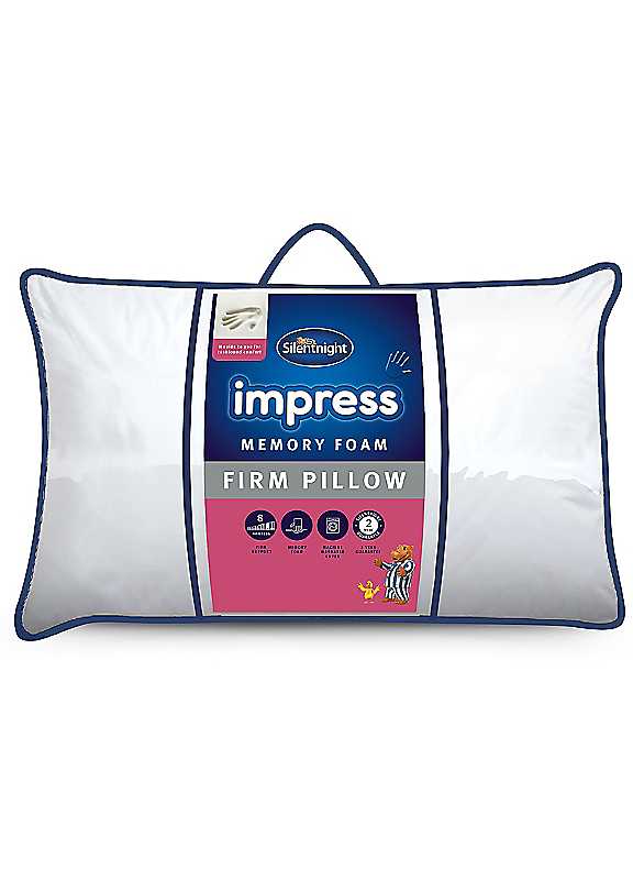 The Impress Memory Foam pillow by Silentnight is made from reactive memory foam that moulds to the contours of your head and neck, giving relief to the muscles and providing the ideal support for people who sleep on their back or side. This firm memory foam pillow will help to keep you supported and comfortable through the night. It comes complete with a fully removable cover which is machine washable so you can keep your pillow feeling fresher for longer. The pillow is made right here in the UK and comes with a two year manufacturer's guarantee so you can sleep soundly with your purchase. The Impress Memory Foam pillow is hypoallergenic which means it does not contain any materials that are likely to cause allergies.. Silentnight are the UK's #1 sleep superbrand with over 70 years' experience in creating products for every sleeper. SINK-IN COMFORT: The soothing memory foam moulds to the contours of your head and neck providing ideal support for people who sleep on their back or side. FIRM MEMORY FOAM: Offers great support and is designed aid pressure relief and muscle tension. REMOVABLE COVER: The removable cover is machine washable so you can keep your pillow feeling fresher for longer. HYPOALLERGENIC: Kind to skin and does not contain any materials likely to cause allergies. MADE IN THE UK: Proudly made with care in the UK. QUALITY GUARANTEED: 2 year manufacturer's peace of mind guarantee. . Silentnight Pillow Features: Made in UK Cover only Spot clean only if required 100% Knitted Polyester