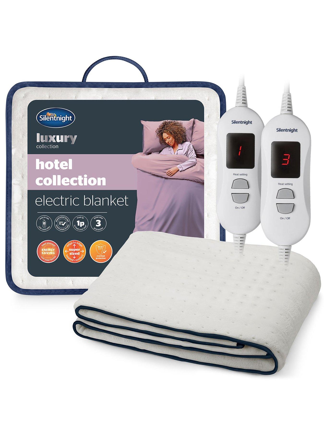 Silentnight Luxury Hotel Collection Electric Blanket Indulge In The 5 Star Comfort Of A Hotel Every Night With A Luxuriously Soft And Cosy Boutique Style Electric Blanket. The Hotel Collection Electric Blanket Reaches Edge-To-Edge For Full Mattress Coverage, Ensuring That Your Whole Bed Is Kept Warm And Cosy, For That True Indulgent Feel. The Supersoft Pinsonic Microfleece Is Finished With A Stylish Piped Finish For A Blissful Slumber. The 3 Heat Settings Allow You To Choose A Temperature That Is Just Right For You. The Silentnight Hotel Collection Electric Blanket Is An Energy Efficient And Affordable Way To Stay Warm For Less. Pre- Heating Your Bed For 1 Hour On A Low Heat Setting Costs As Little As 1P, So You Can Afford Cosy Hotel Comfort Night After Night. As Sleep Experts We Recommend Turning Off The Appliance Before Falling Asleep To Regulate Your Core Temperature For A Less Disturbed Sleep. The Slimline Controllers Are Super Easy To Use And The Elasticated Corner Staps Mean That Fitting Your Blanket Securely To Your Mattress Is Effortless. Silentnight Are The Uk'S Most Trusted Sleep Brand With Over 75 Years' Experience In Creating Products To Help The Whole Family Get That ?Great Sleep' Feeling. Depth: 2 Cm Design Type: Plain Height: 152 Cm Material Content: 100% Polyester Washing Instructions: Machine Washable Width: 203 Cm 5 Star Comfort: Indulge In The 5 Star Comfort Of A Hotel Every Night With A Luxuriously Soft And Cosy Boutique Style Electric Blanket. Supersoft & Stylish: Covered In An Extra Soft Microfleece Fabric For Maximum Cosiness And Featuring An Elegant, Piped Stripe Finish. Edge-To-Edge Coverage:Full Mattress Coverage, Ensuring The Whole Bed Is Warm And Cosy And Easy Fit Elasticated Straps Secure The Blanket. Customisable Warmth:The Led Controller Feature 3 Settings That Heat Up In Minutes To The Preferred Temperature So You Feel Snug When You Get In. Quality Guarantee: Features Sleep Safe Overheat Protection For Total Peace Of Mind And A 3 Year Manufacturer?S Guarantee. Machine Washable: Machine Washable To Keep Your Electric Blanket Feeling Fresh And Hygienic.