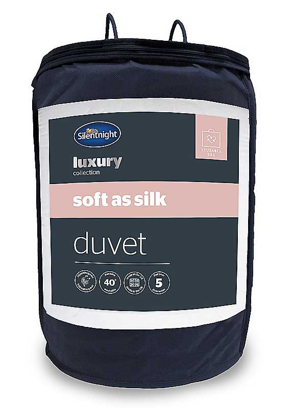 The Silentnight Soft as Silk duvet promises luxurious softness and warmth. The combination of the Percale microfibre cover with a silky hollowfibre filling provides a soft and very snug sleep experience. The soft microfibre cover and silky filling makes this an incredibly comfortable duvet which is a great choice for those who love a really soft and snuggly duvet, as it combines the smooth and silky feel of luxury. The Soft as Silk duvet is beautifully made in the UK and has a 5 year manufacturers guarantee so you can feel rest assured with your purchase. This duvet is hypoallergenic which means the contents do not contain any allergy causing materials. The duvet is Washable which helps to keep your duvet fresh and clean for longer. Silentnight Duvet Features: Made in UK Hypoallergenic Washable Cover: Percale microfibre Filling: Hollowfibre 5 Year guarantee