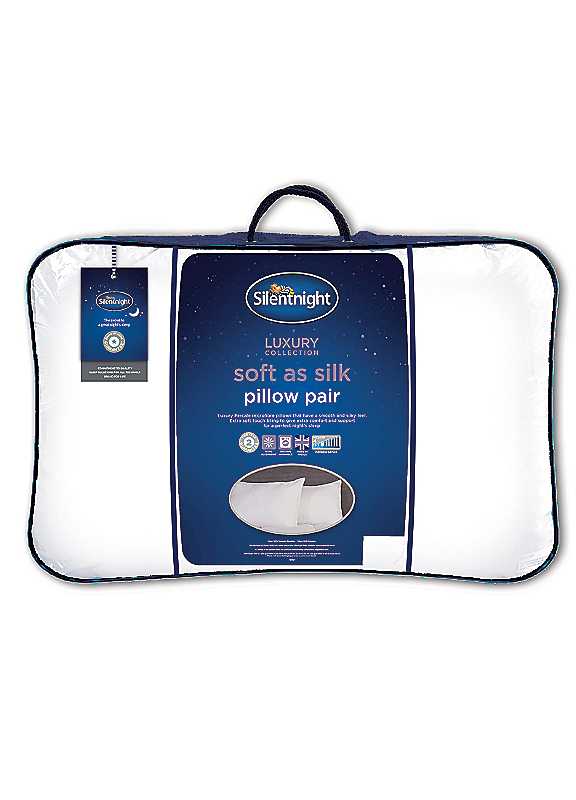 Add a touch of luxury to you bedroom with this super smooth Silentnight Soft as Silk pillow pair, combining comfort and elegant style. Providing medium firmness and comfort, the pillows are encased in microfibre and are filled with extra soft and silky hollowfibre added comfort for a blissful night's sleep. The pillows are made right here in the UK and come with a two Year manufacturer's guarantee so you can sleep soundly with your purchase. These pillows are hypoallergenic which means they do not contain any materials that are likely to cause allergies. They are also Washable keeping a long lasting fresh and clean feel. Silentnight Pillows Features: Made in UK Provides soft support & suitable for front & back sleepers Extra soft fibre filling Percale microfibre cover Machine wash Hypoallergenic 2 year manufactures warranty