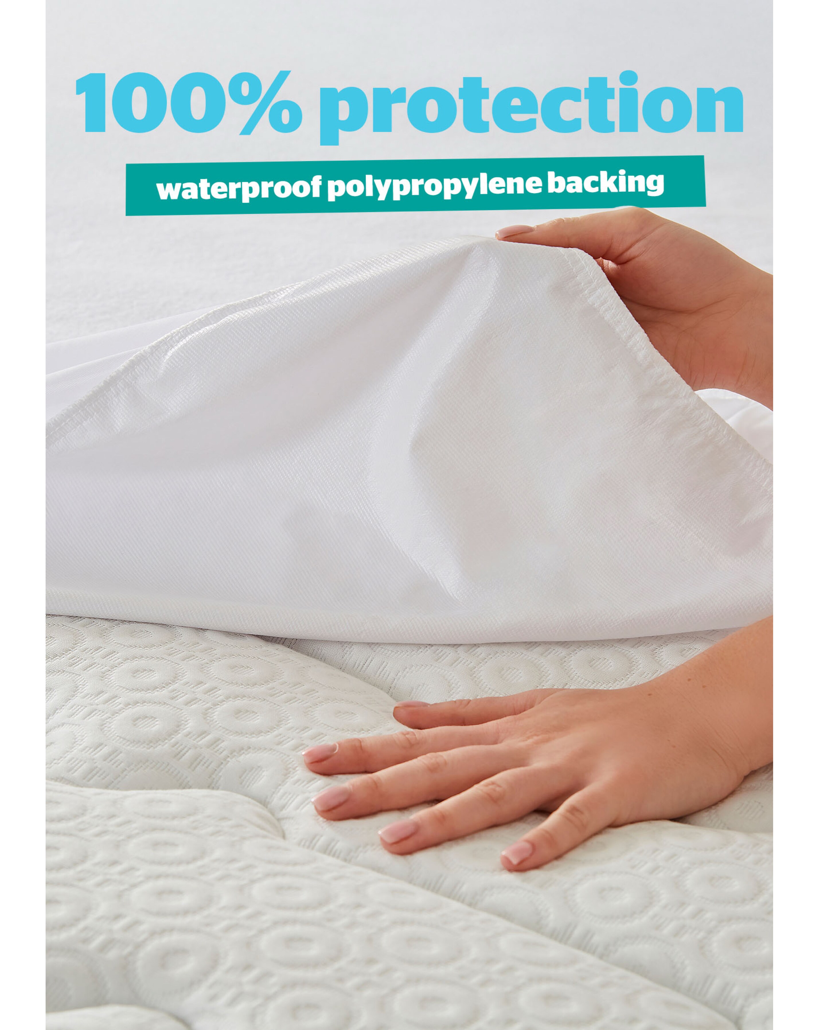 Supersoft waterproof protection for comfortable stay dry nights. Crafted with an absorbent 100% cotton terry towelling fabric with a polypropylene backing for waterproof protection.