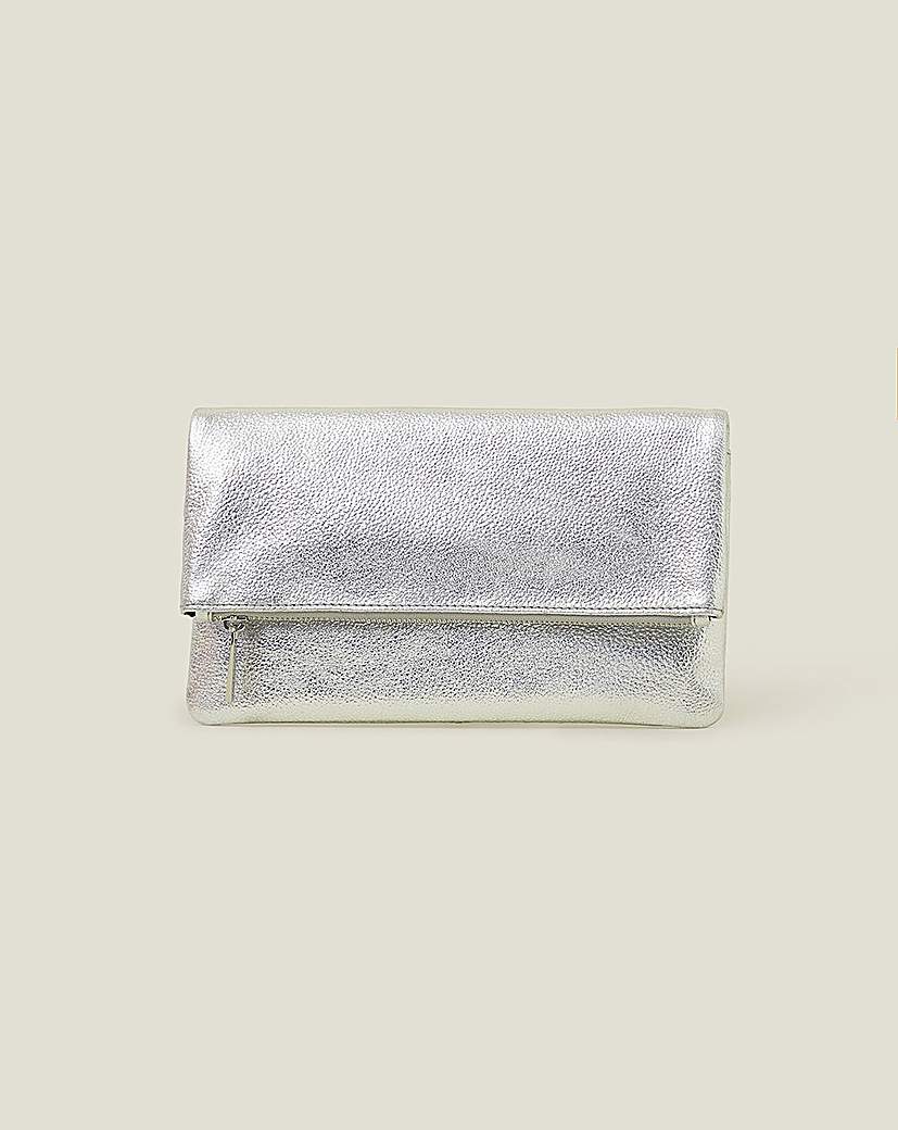Accessorize Leather Metallic Fold Over Clutch Looking for a bag to accompany you at dinner-and-drinks? Designed in soft leather with a metallic finish, this clutch is ideal for nights out! Style with an LBD as a shiny accessory, or with a sparkly dress for something more statement. Outer: Outer: Leather (Cow) 100% Lining: Lining: Polyester 100%