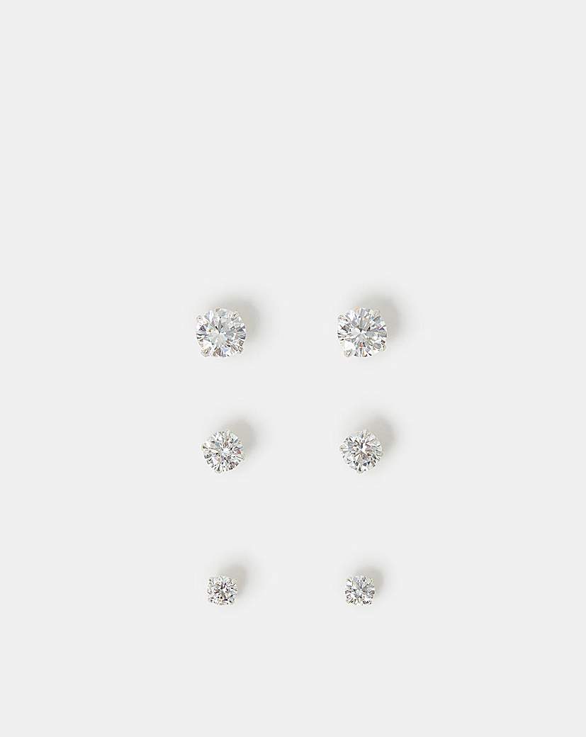 Accessorize 3-Pack Sterling Silver-Plated Crystal Studs Sparkly crystals will delicately grace your earring collection with this set, featuring three pairs of studs designed in sterling silver. They boast graduating sizes, adding variety to your earring stack. Three pairs included.Non-refundable. Composite: Cubic Zirconia 33% , Sterling Silver (Recycled) 67%