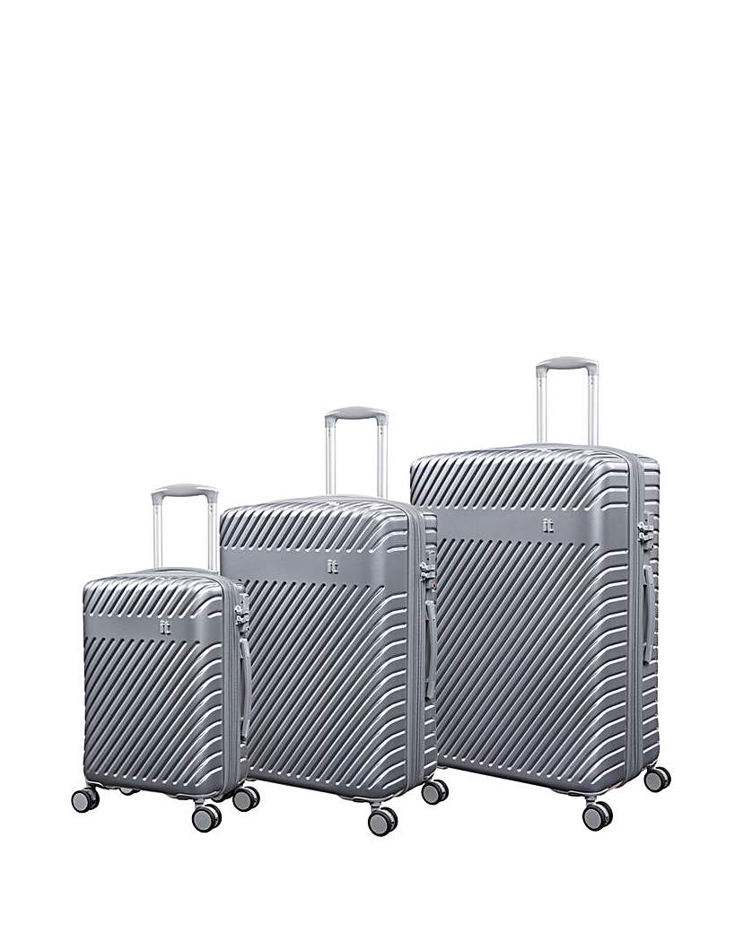 Discover the latest addition to our hard luggage with the new Slipstream 3-piece set. Decorated in an ultra stylish cross stripped debossed outer shell with a high-shine finish and detailed with gold components from logo to zip. Also featuring the zippered expander section providing up to 25% additional space. Each case has a integrated TSA Lock offering extra peace of mind while on your trip. Finished with an 8-wheel spinner system for superior control and a clamshell design central opening helps separate belongings. 10 Year Manufacturers Warranty.