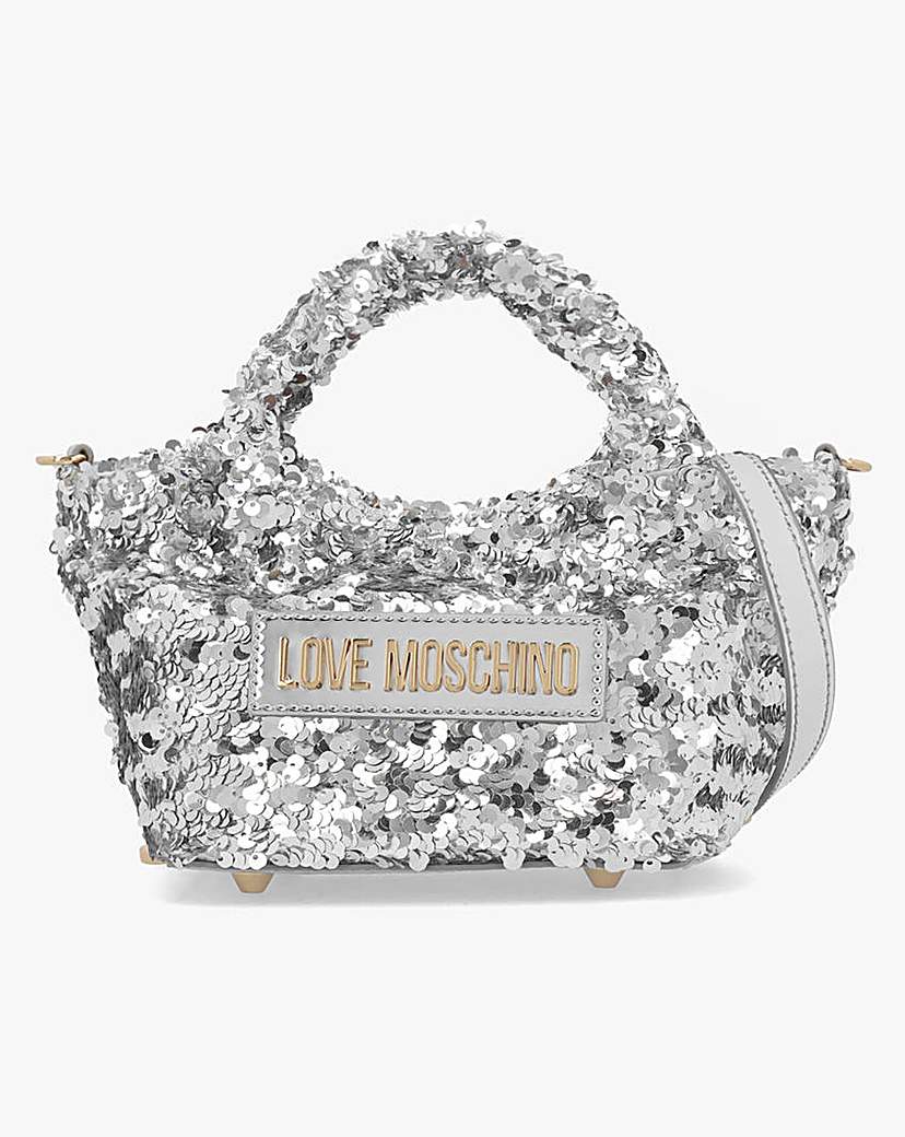 Silver Love Moschino Sequin Top Handle Bag