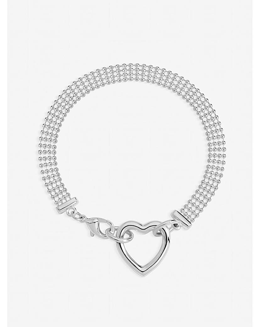 Silver Plated Mesh Heart Clasp Bracelet
