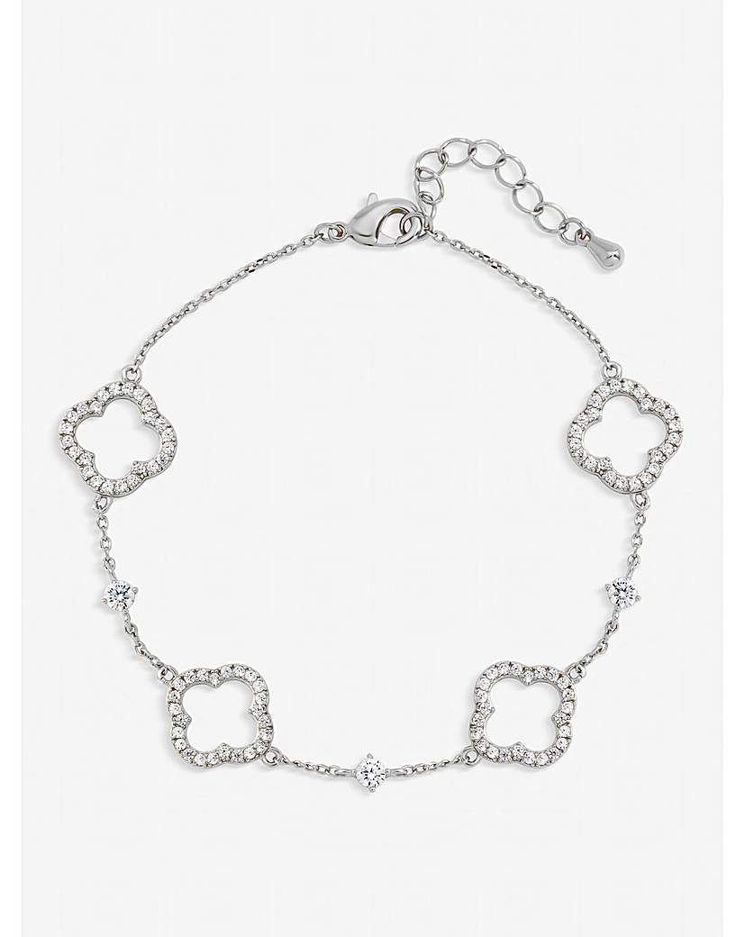 Jon Richard Silver Plated Pave and Crystal Open Clover Bracelet The Jon Richard Silver Plated Pave and Crystal Open Clover Bracelet is a sparkling and sophisticated addition to any jewellery collection. Featuring delicate open clover motifs adorned with pave crystals along polished silver plating, it catches the light beautifully from every angle. Perfect for both day and evening wear, this bracelet adds refined elegance and timeless glamour to the wrist. Fastening: Lobster clasp Material: Silver plated base metal Chain length: 7, extender length: 2". Width: 15mm, length: 15mm. "