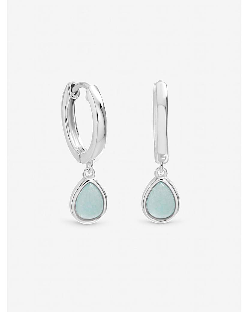 Inicio Sterling Silver Plated Turquoise Peardrop Charm Hoops Our Inicio Turquoise Peardrop Charm Hoop earrings offer a beautiful pop of colour with an eye catching design. These elegant hoops feature a delicately polished sterling silver plated hoop from which a vibrant Turquoise peardrop charm is suspended. The smooth, bright stone adds a refreshing and striking detail. Perfect for adding a bohemian touch or a vibrant accent to your everyday Jewellery collection. Our 3 micron sterling silver plating uses a heavy, premium layer of silver that delivers a brighter finish, greater resistance to tarnish and wear, and significantly longer lasting quality than standard plated jewellery. Fastening: Hoop Material: Sterling silver plated brass Width: 25mm, length: 25mm. Non-returnable: in the interest of hygiene we are unable to exchange or refund this item unless faulty, this does not affect your statutory rights.