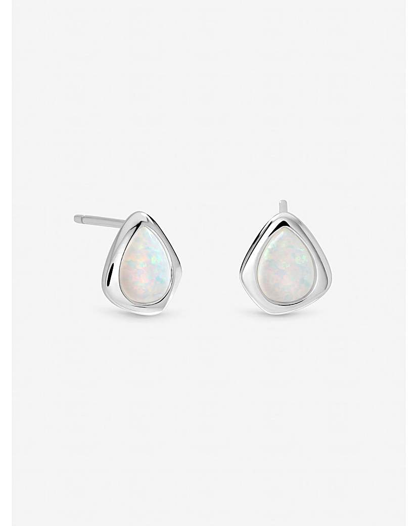Inicio Sterling Silver Plated Opal Polished Stud Earrings Our Inicio Opal Polished Stud Earrings bring a subtle touch of iridescent elegance to any outfit. Crafted in polished sterling silver plating, each earring features a luminous opal stone with a smooth, polished finish that catches the light beautifully. Lightweight and versatile, they're perfect for everyday wear or for adding a delicate, sophisticated accent to both casual and dressy looks. Our 3 micron sterling silver plating uses a heavy, premium layer of silver that delivers a brighter finish, greater resistance to tarnish and wear, and significantly longer lasting quality than standard plated jewellery. Fastening: Post and bullet back Material: Sterling silver plated brass Width: 11mm, length: 11mm. Non-returnable: in the interest of hygiene we are unable to exchange or refund this item unless faulty, this does not affect your statutory rights.