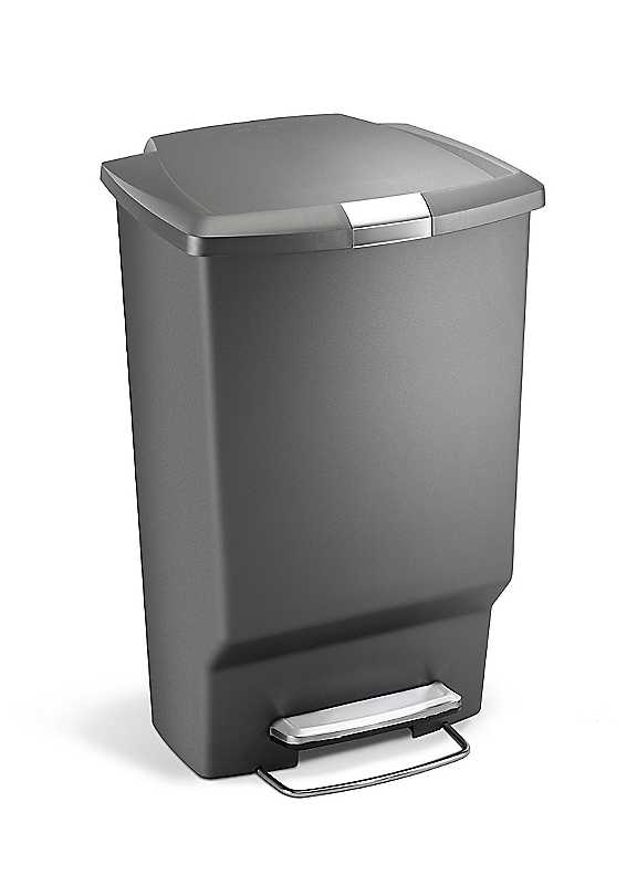 The simplehuman rectangular plastic pedal bin has a wide opening and a large capacity - ideal for throwing away bulky items. The strong steel pedal is designed to last, and our patented lid shox technology ensures a smooth, silent close every time. A slide lock helps keep rubbish in and pets and curious children out. The simplehuman code K liner fits this bin perfectly - no bunching or slipping for a cleaner experience.Silent close lid: simplehuman's patented lid shox technology controls the motion of the lid for a slow, silent closeLock the lid shut: A slide lock securely locks the lid to help keep pets & curious children from getting into the rubbishStrong steel pedal: Engineered for a smooth & easy stepSlim profile hinge: Slimmer than traditional hinge designs, allows you to place the bin closer to the wallStay-open lid: The lid stays open for as long as you like, perfect for longer choresCustom fit liners: Our code K liners are designed to fit this bin perfectly so they don't slip. Extra-thick plastic & double-seam construction prevent rips & tearsHeavy Weight Plastic